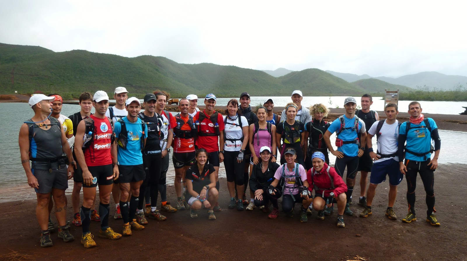 La dernière ascension se termine sur un sentier en crête fraîchement ouvert par les bucherons fous de Nouvelle Calédonie Aventure, sentier très exigeant qu'il ne faudra pas négliger le jour de la course. Le pont Pérignon est en vue, il ne nous reste plus qu'à dérouler jusqu'au lac ou nous tenterons, en vain, d'effacer la rougeur des pigments déposés sur notre peau et vêtements.